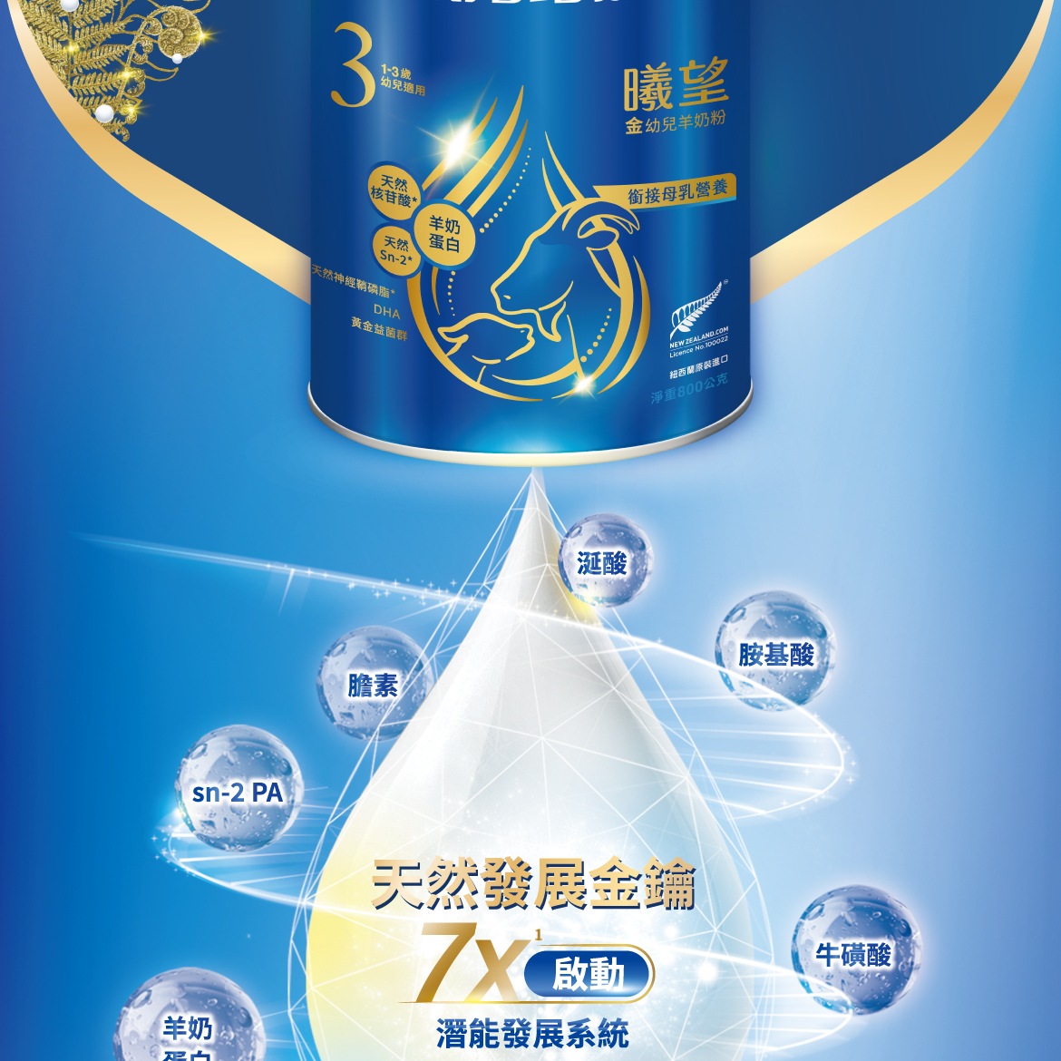 在每一口營養中,看見希望。 來自純淨乳源的「曦望」,為寶寶打造自然不敏感、安心好吸收的未來。小分子羊奶蛋白,溫和不易敏感;7大天然營養素,銜接母乳,關鍵成長守護者。天然神經鞘磷脂、核苷酸,幫助打造學習力。